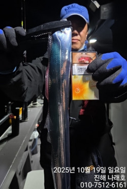 ■ 30일(목) 내만 갈치 3분 철수조황~● 선장 취침으로 문자 남겨주시거나 예약사이트 "선상24"로 예약주시기 바랍니다~오늘 31일(금), 내일 11월 1일(토) 오후 5시 출항~ 자리널널~ 예약가능~선상에서만 즐길수 있는 신선하고 맛난 나래호 별미 갈치회 드시러 오세요~평일 독배 저렴하게 모십니다~화재관련 보험업무 및 개인 일정으로 몇일만에 오붓하게 출조~몇일사이에 씨알도 마릿수도 좋아졌네요~전원 부쩍 커진 3지 갈치의 묵직하고 뻐팅기는 짜릿한 손맛 즐기고 이선장표 갈치회 4종 맛나게 드시고 기분좋게 마무리 하였습니다~텐빈도 좋았고~ 텐야도 좋았고~갈치들이 수면에 점프를 뛰고 난리난리~예보에 없던 강풍으로 고생하신 조사님들 대단히 감사드리며 안전히 귀가하셨길 바랍니다~● 야간에 많이 춥습니다~ 방한준비 철저히 해오시기 바랍니다~● 텐빈용 싱싱한 꽁치미끼 출항 전 주문하시면 배에서 구입 가능합니다~ (3통에 만원, 단 미리 말씀주셔야 선장도 주문하니 반드시 사전에 몇개 구입한다고 말씀주시기 바랍니다~)31일(금) 예약가능~11월 1일(토) 예약가능~2일(일) 예약가능~다음주 쭉 예약가능~● 진해 속천항 나래호 이선장 010-7512-6161 ● ■ 내만 갈치낚시 출조안내~ ■출항 : 오후 5시철수 : 03시경 (유동적)개인 도시락, 갈치회, 컵라면, 얼음, 생수, 커피, 음료 제공선비 : 7만원 (11월 3일부터 부득이 8만원으로 인상됩니다~)◆◆ 수협 2020-5030-0220 조점순 ◆◆※ 선입금 하셔야 예약완료 됩니다~※ 반드시 입금 후 입금자명 문자주시기 바랍니다~ (누락방지~)나래호 밴드https://band.us/n/a9a0A3M6H2MfP24시간 예약사이트https://narae.sunsang24.com/ ◆ 출항지 주소안내~경남 창원시 진해구 진희로 36(진해 카페리 유람선 터미널 GS25 편의점건물 뒤)※ 배 앞 주차가능~ ■ 진해 속천항 나래호 이선장 010-7512-6161 ■※ 신분증 지참하여 승선 (핸드폰 사진 불가)※ 음주승선 및 주류반입 금지▶ 나래호는 24년 12월 거제 장목항에서 진해 속천항으로 이사온14년 경력의 젊고 친절한 베테랑 선장이 운영하는 선사입니다~▶ 신조선 나래호는 넓은 낚시공간으로 편안하게 낚시 가능하며가족적인 분위기에 웃음과 미소가 넘치는 훈훈한 선사입니다~▶ "진해 나래호" 밴드 가입하시면 보다 빠르고 정확한 조황 및 출조정보 확인 가능합니다~▶ 출조마다 만쿨은 힘들지만 만쿨을 위해 최선을 다하는 나래호가 되겠습니다~▶ 한번도 승선하지 않은 조사님은 많아도, 한번만 승선한 조사님은 없는 선사~▶ 항상 조사님들의 풍족하고 즐거운 출조를 위해 노력하는 선사가 되겠습니다~ *** 진해 나래호 예약 안내 ***예약문의 : 010-7512-6161오시는길 : 경남 창원시 진해구 진희로 36 (진해 카페리 유람선 선착장 내)홈페이지 : https://narae.sunsang24.com/