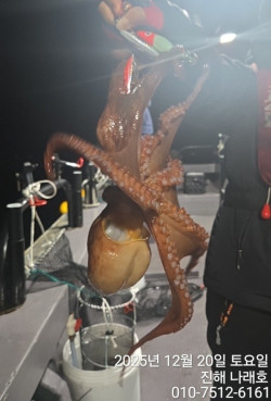 낙지~ 씨알굿~ 손맛굿~ 문어는 뽀너스~ 오늘 23일(화) 오후 6시 30분 출항~ 예약가능~ 자리널널~ ■■ 27일(토) 오전 9시 출항~ 감성돔 흘림 출조합니다~ 4자리 예약가능~ 출항 : 오전 9시경, 철수 : 오후 5시경 도시락, 컵라면, 미끼(백크릴), 밑밥, 생수, 커피 제공~ 선비 : 10만원 ● 26년 1월 1일 해돋이 감성돔 출조 예약가능~ 출항 : 오전 5시, 철수 : 오후 2시경 내용은 동일~ 낙지출조는 내년 4~5월까지 게속됩니다~ 귀한 시간내시어 설레임을 안고 나래호 찾아주신 조사님들 즐겁고 풍족한 낚시 즐기실 수 있도록 항상 최선을 다하겠습니다~ 기상좋고 물때좋아 낙지와 키로급 문어가 많이 낚이는 포인트로 달립니다~ 토요일 초보분들 포함 여러분 모시고 낙지 다녀왔습니다~ 멀리간 첫 포인트 낱마리 다시 멀리 이동하여 씨알좋은 낙지와 키로급 문어까지 1분 제외하고 전원 손맛보셨네요~ 만족스러운 조황은 아니었지만 모두 열낚해주셔서 선장도 기운냈습니다~ 감사합니다^^ 본격적인 시즌이 시작되어 씨알과 마릿수 기대해도 좋습니다~ 철수까지 열낚해주셔서 감사드리고 안전히 귀가하셨길 바랍니다~ 낙지 씨알이 문어만한것도 곧잘 올라오네요~ 초보분들도 많이 잡으실 수 있도록 오랜 경력의 친절한 선장이 1:1 코칭 해드립니다~ 보양식 낙지~탕탕이~ 연포탕~ 낙지구이~ 낙지전 등~낙지낚아 손맛도 즐기시고, 보양식 드시고 건강까지 챙기시길 바랍니다~ 초보가능~ 23일(화) 야간 낙지 예약가능~ 24일(수) 야간 낙지 예약가능~ 25일(목) 기상확인중~ 26일(금) 기상확인중~ 27일(토) 주간 감성돔 흘림 4자리 예약가능~ 야간 낙지 예약가능~ 28일(일) 야간 낙지 예약가능~ 쭉 예약가능~ https://youtube.com/shorts/t0IagMTgbOE?si=YQhPphgd196AhmwI 나래호 밴드https://band.us/n/a9a0A3M6H2MfP 24시간 예약사이트https://narae.sunsang24.com/ 나래호 YouTubehttps://youtube.com/channel/UCCAyCL3NOp3C8jTRop7WA3g?si=4j1Vv8p0_Oa9FxVA조황등록 수정 삭제 *** 진해 나래호 예약 안내 ***예약문의 : 010-7512-6161오시는길 : 경남 창원시 진해구 진희로 36 (진해 카페리 유람선 선착장 내)홈페이지 : https://narae.sunsang24.com/