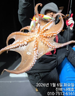 낙지~ 씨알굿~ 손맛굿~ 문어는 뽀너스~● 27일(토) 오후 6시 출항~ 낙지 7자리 예약가능~● 28일(일) 오전 감성돔 흘림 예약완료~ 감사드립니다~야간 낙지 예약가능~■■ 1월 1일(목) 오전 5시 출항~ 26년 해돋이 감성돔 흘림 출조합니다~26년 붉은 말의 해 희망찬 해돋이 기운 받으실 조사님들 모십니다~출항 : 오전 5시경, 철수 : 오후 2시경떡국, 컵라면, 미끼(백크릴), 밑밥, 생수, 커피 제공~선비 : 10만원낙지출조는 내년 4~5월까지 게속됩니다~귀한 시간내시어 설레임을 안고 나래호 찾아주신 조사님들 즐겁고 풍족한 낚시 즐기실 수 있도록 항상 최선을 다하겠습니다~기상좋고 물때좋아 낙지와 키로급 문어가 많이 낚이는 포인트로 달립니다~어졔도 오붓하게 낙지출조 다녀왔습니다~첫 포인트부터 낙지가~~~물때에 따라 조금씩 옮겨다니며 옮길때마다 문어만한 낙지부터 맛있는 탕탕이 사이즈까지~낙지 첫 도전하신 조사님까지 묵직한 손맛 즐기셨네요~물메기는 뽀너쓰^^예보보다 강한 바람에도 철수까지 열낚해주셔서 감사드리고 안전히 귀가하셨길 바랍니다~기상악화로 27일(토)부터 낙지출조는 계속됩니다~낙지 씨알이 문어만한것도 곧잘 올라오네요~초보분들도 많이 잡으실 수 있도록 오랜 경력의 친절한 선장이 1:1 코칭 해드립니다~보양식 낙지~탕탕이~ 연포탕~ 낙지구이~ 낙지전 등~낙지낚아 손맛도 즐기시고, 보양식 드시고 건강까지 챙기시길 바랍니다~초보가능~25일(목) 기상악화로 휴항~26일(금) 기상악화로 휴항~27일(토) 야간 낙지 7자리 예약가능~28일(일) 야간 낙지 예약가능~쭉 예약가능~26년 1월 1일(목) 오전 5시 출항~ 해돋이 감성돔 흘림 예약가능~ ■ 야간 낙지 출조안내 ■출항 : 오후 6시, 철수 : 24시 이후컵라면, 생수, 커피, 음료 제공~선비 : 6만원● 낙지낚시 준비물~ (문어와 동일~)쭈갑대, 문어대, 에깅대합사 원줄고추장에기, 레이저에기, 카고에기, 박대리에기 등봉돌 8호~15호◆◆ 수협 2020-5030-0220 조점순 ◆◆※ 선입금 하셔야 예약완료 됩니다~※ 반드시 입금 후 입금자명 문자주시기 바랍니다~ (누락방지~)- 진해 속천항 나래호 이선장 010-7512-6161 -나래호 밴드https://band.us/n/a9a0A3M6H2MfP24시간 예약사이트https://narae.sunsang24.com/나래호 유튜브
