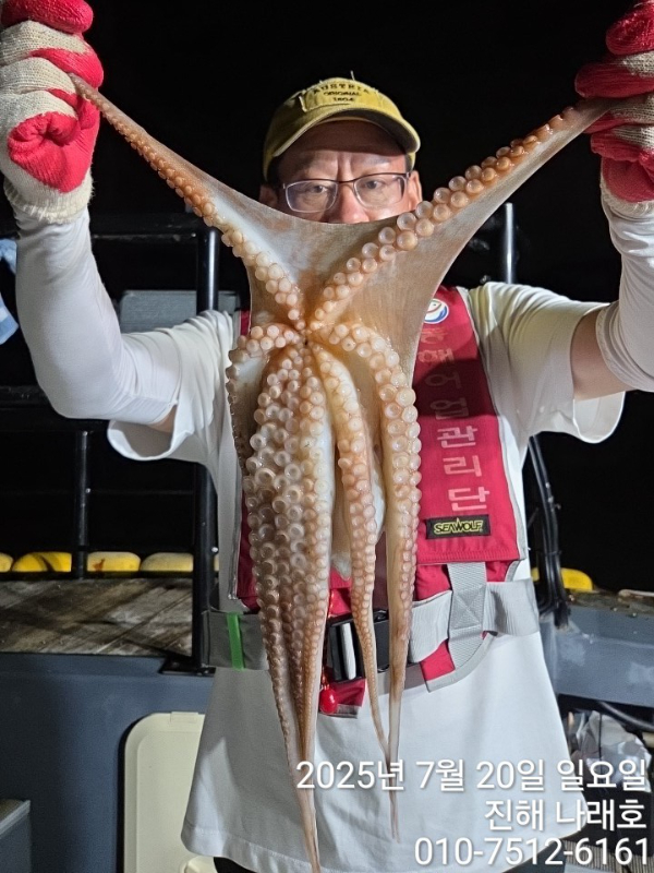 나래호 승선정원 선장 빼고 11명 입니다~ 자리는 선착순 입니다~ (4인 이상 자리 우선 배정~) #문어 #갈치 #무늬오징어(팁런) #화살촉오징어 #낙지 #호래기 #감성돔(흘림) #갑오징어 #백조기 엄청난 폭우로 탁해진 바다를 걱정하며 5분 모시고 황제낚시 출항~ 첫포인트부터 씨알좋은 돌문어가 올라오네요~ 마릿수 찾아다닌 양식장보다 섬치기가 씨알이 끝내주네요~ 굵어진 돌문어들 뜯어내시며 엄지척~ 이래저래 빠져버린 문어도 다수~ㅠㅠ. 기다리던 피딩시간 운나쁘게 엄청난 로프를 감아 다이버까지 투입하느라 낚시도 제대로 못하셧네요~ 그래도 선장 기운내라고 언짢은 기색없이 기다려주시고 열낚해주신 마음 넓은 조사님들 감사드리고 죄송합니다~ 다음을 기약하며 즐거운 출조 기분좋게 철수하였습니다~ 선장믿고 철수까지 열낚해주신 조사님들 대단히 감사드리며 안전히 귀가하셨길 바랍니다~